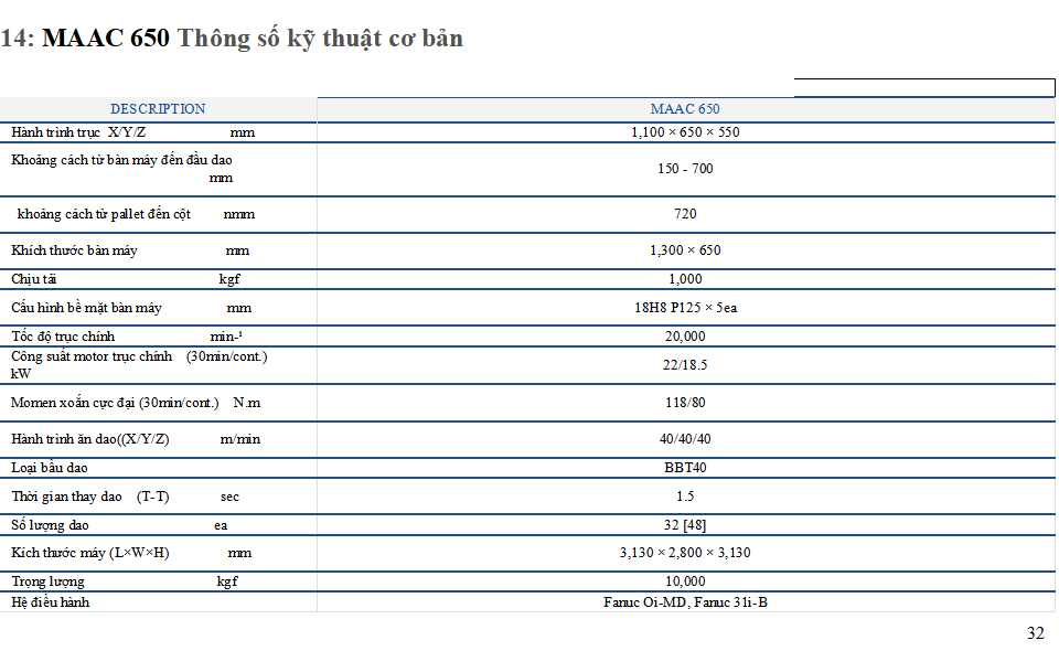 MAAC 650 TRUNG TÂM GIA CÔNG CHO DIE HOẶC KHUÔN Tốc độ cao và độ cứng trung tâm gia công dọc kiểu cấu trúc kiểu Forcial với độ chính xác cao